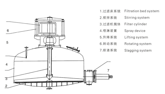 The equipment is composed of vertical container, stirring device, lifting mechanism, transmission mechanism, filtering device, washing device and other components. It is a multifunctional solid-liquid separation device integrating stirring, mixing, beating, filtering and washing. It is widely used in chemical, food, printing and dyeing, medicine and other industries.